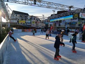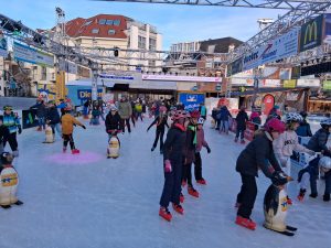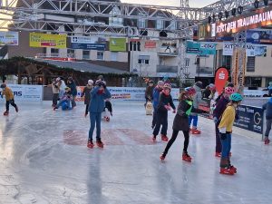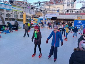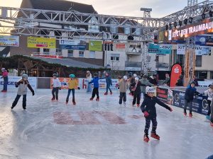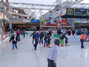 Am Ziel sorgte eine Stunde Schlittschuhlaufen bei allen für viel Spaß auf der Eisbahn. Unzählige Runden drehten die Mädchen und Jungen. Einige ließen sich Pommes, gebrannte Mandeln oder einen Kakao schmecken, ehe es in Kleingruppen in die City und dann mit dem Bus zurück zum GAG ging.