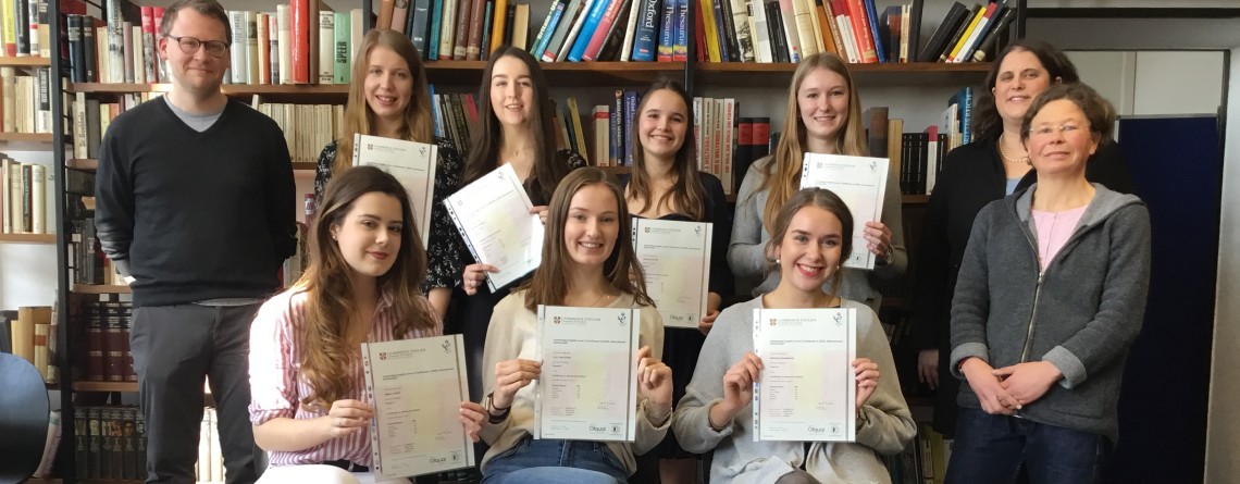 Erneut nahm in diesem Schuljahr eine Gruppe von sieben Schülerinnen des Graf-Adolf-Gymnasiums sehr erfolgreich an der schulinternen Vorbereitungs-AG für das Cambridge Certificate teil. Sie absolvierten extern schriftliche und mündliche Prüfungen an der VHS-Münster im Rahmen des Europaratsniveaus C1. Ein muttersprachlich-englisches Prüfungsgremium attestierte allen Tecklenburger Prüflingen „fachkundige Sprachkenntnisse“ im Rahmen des europäischen Referenzrahmens der Beherrschung von Fremdsprachen. Das Zertifikat ermöglicht, je nach erreichtem Leistungslevel, einen Hochschulzugang ohne zusätzlichen Sprachnachweis an deutschen oder auch an internationalen Universitäten. Auch viele nationale und internationale Unternehmen schließen sich dieser Regelung an und erkennen die Bedeutung hervorragender Ergebnisse im Cambridge Certificate in Bewerbungsunterlagen.