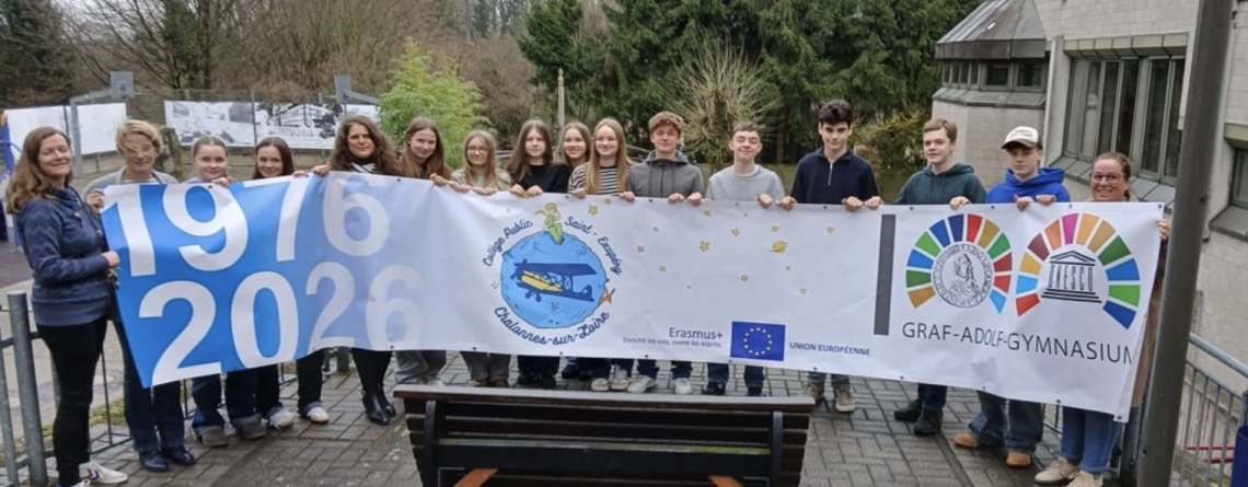 50 Jahre Schulpartnerschaft mit dem Collége Saint Exupéry gewürdigt Eine besondere Würdigung ihrer seit nunmehr 50 Jahren bestehenden Schulpartnerschaft stand das Graf-Adolf-Gymnasium und das Collège Saint Exupéry in Chalonnes-sur-Loire im Schuljahr 2025/26 auf der Agenda. Nachdem im Herbst 2025 in Chalonnes die ‚französische Eröffnung‘ mit vielen tollen Ideen und Gästen aus beiden Ländern stattgefunden hatte, bildete der Besuch der Chalonner Austauschgruppe in Tecklenburg vom 19. – 27. März 2026 ein ereignisreiches und festliche Jubiläumsfinale. Die diesjährige Partnerschaftsgruppe umfasste 42 „corres“ von...
