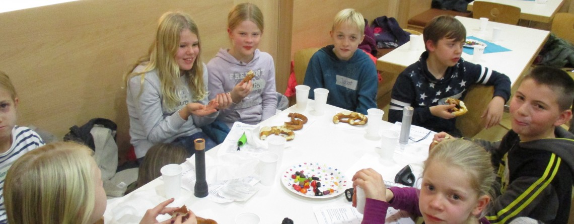 71 Mädchen und Jungen, die die kommende Jahrgangsstufe 5 besuchen werden, 14 Kilo Bananen, zwölf Liter Wasser und Apfelschorle sowie neun Klassenpatinnen und -paten waren einige der Zutaten für einen kurzweiligen Kennenlernnachmittag rund zwei Wochen vor den Sommerferien. Die kommenden Klassenleitungen des fünften Jahrgangs im Schuljahr 2018/19 und ihre Stellvertretungen, Christine Dormann und Florian Dieck (5a), Inga Diener-Friesen und Matthias Reineke (5b) sowie Birgit Füchtmeyer und René Gizinski (5c), begrüßten mit Erprobungsstufenleiter Björn Igelbrink die Kinder herzlich in der Schulmensa. Hier lernten...