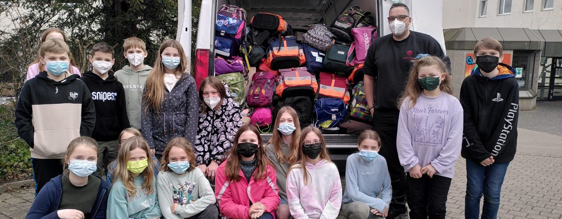 Überwältigt von der außerordentlichen Spendenbereitschaft der Schulgemeinschaft des Graf-Adolf-Gymnasiums, der Tecklenburger Bürger*innen und vielen Spender*innen aus dem Umland wurde die erste Hilfslieferung am Freitagmorgen auf den Weg nach Stara Kamienica geschickt. 100 prall gefüllte Schultaschen machten sich auf den europäischen Weg ihrer Bestimmung. Die vielen Hilfsgüter der Spendenaktion GEMEINSAM AUFSTEHEN FÜR GERECHTIGKEIT – DAS GAG HILFT, die mittlerweile zwei ganze Räume der UNESCO-Schule füllen, wurden in den letzten Tagen liebevoll von Schüler*innen und ihren Lehrkräften kompakt verpackt und transportfertig gemacht....