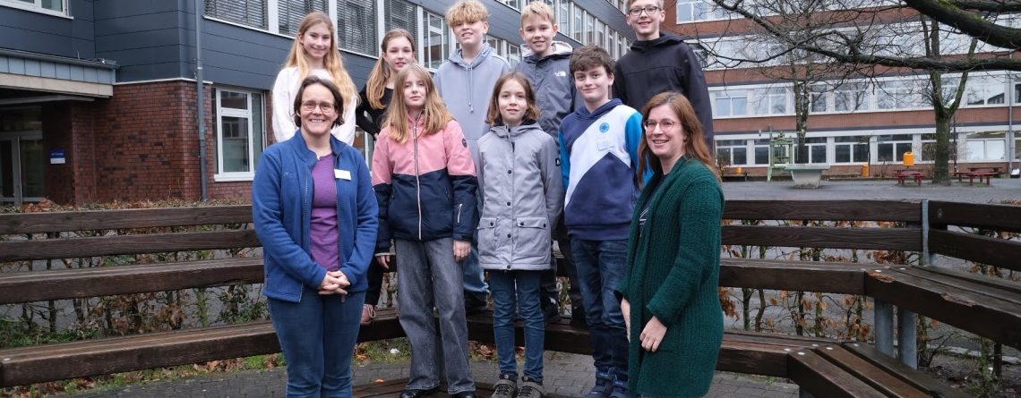 Diesmal fand die SAMMS am HAG statt, und vom GAG waren acht mathematikbegeisterte und begabte Kinder der Jahrgangsstufe 6 dabei (Foto). Begleitet von Stephanie Akampund Jenny Miegel aus dem GAG-Matheteam stellten sie sich am Freitagnachmittag (9. 2. 2024) ihren Aufgaben in gemischten Teams aus jungen Mathe-Cracks von Schulen inLengerich, Recke, Mettingen, Ibbenbüren und Saerbeck.