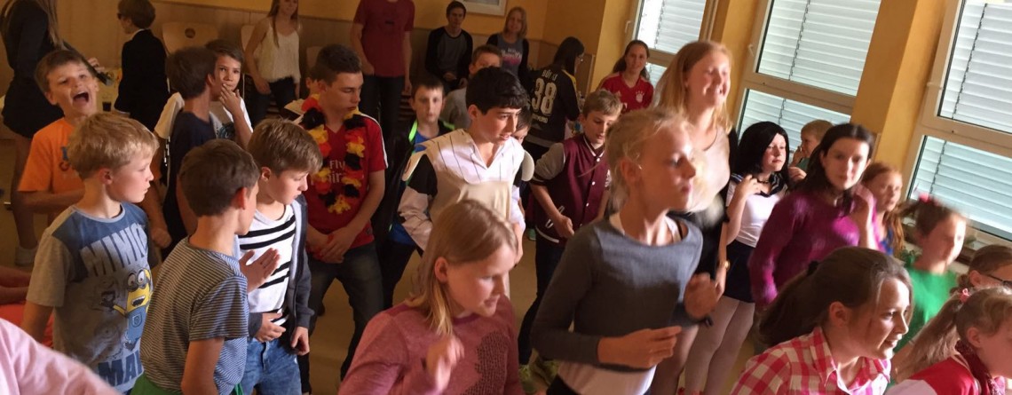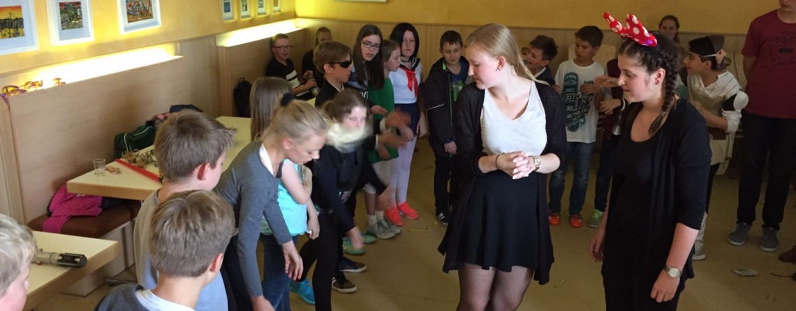 Viel Spaß und ausgelassene Stimmung herrschte im 5. Jahrgang zum Ende des ersten Schuljahres am GAG. Die Streitschlichter-AG, der auch die neun Klassenpaten angehören, hatte unter der Leitung von Susanne Wilmer die 5a, b und c zu einer Party eingeladen. Die stand unter dem Motto “Helden der Kindheit”. Wer wollte, konnte sich dazu passend verkleiden. In der Mensa kam gute Sommerlaune auf. Musik, Getränke und Spiele sorgten für Unterhaltung.
