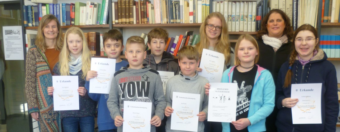 Zehn Schülerinnen und Schüler des Graf-Adolf-Gymnasiums nahmen wieder erfolgreich an der Kreisrunde der in jedem Schuljahr ausgetragenen Mathematikolympiade teil. Die Ergebnisse der Klausuren, die im November im Gymnasium Dionysianum in Rheine geschrieben wurden, erreichten im Dezember die Schulen, und nun auch die Erfolgsurkunden. Der Wettbewerb ist bereits auf der Kreisebene für alle Jahrgänge mit einem hohen Schweregrad der Aufgaben so anspruchsvoll, dass es schwierig ist, überhaupt eine Platzierung zu erlangen.