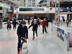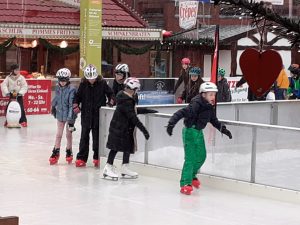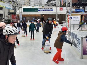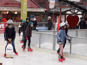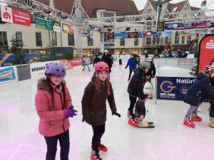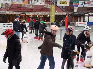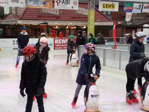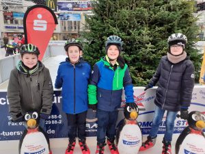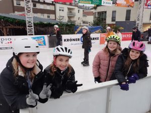 Am Ziel sorgte eine Stunde Schlittschuhlaufen bei allen für viel Spaß – trotz der widrigen Wetterbedingungen mit Regen auf der Eisbahn. Unzählige Runden drehten die Mädchen und Jungen. Einige ließen sich Pommes, gebrannte Mandeln oder einen Kakao schmecken, ehe es mit dem Linienbus zurück zum GAG ging.