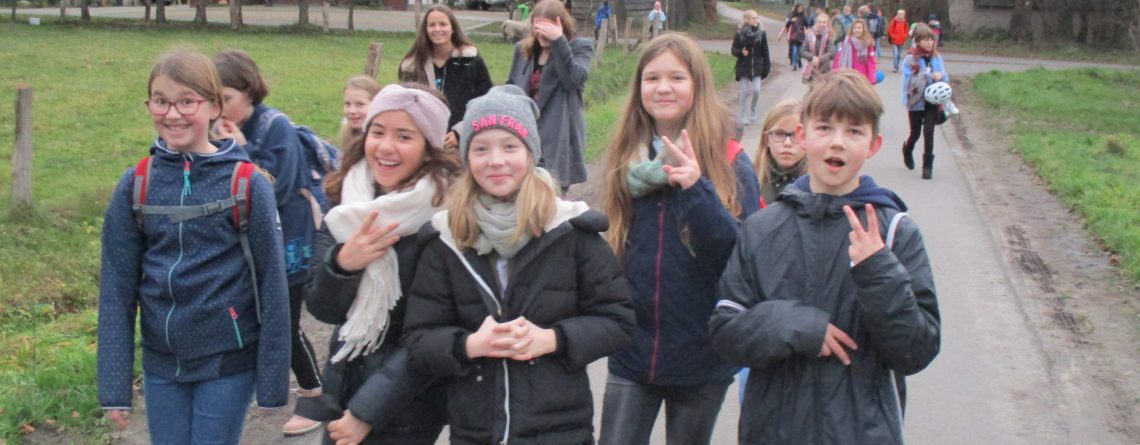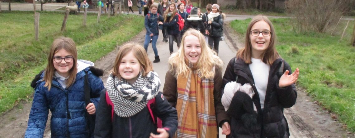Zunächst ging es vom GAG aus mit dem Bus gen Ledde zur Haltestelle Sundermann. Von dort stand ein Spaziergang durch das Aatal an – mit unterschiedlichen Tieren am Wegesrand. Pony, Pferde, Schafe oder Hunde beäugten die Gruppe interessiert und freuten sich über Streicheleinheiten.