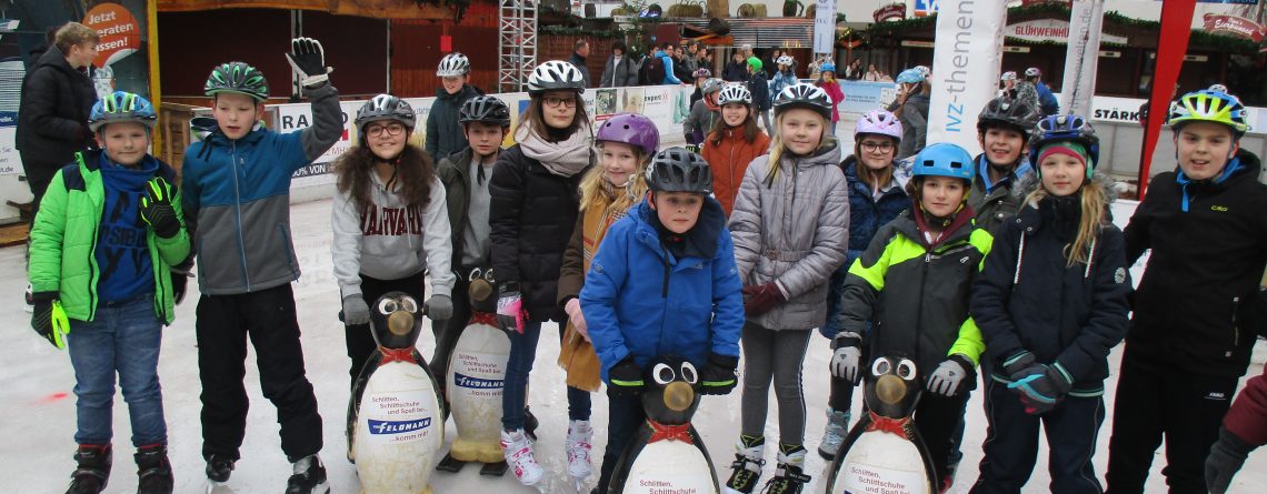 Entlang der Bocketaler Straße und am Ostring vorbei wanderten die Kinder in Richtung Aasee, ehe es zum Ibbenbürener Rathausplatz ging. Am Ziel sorgte eine Stunde Schlittschuhlaufen bei allen für viel Spaß. Unzählige Runden drehten die Mädchen und Jungen. Einige ließen sich Pommes, gebrannte Mandeln oder einen Kakao schmecken, ehe es mit dem Bus zurück zum GAG ging.
