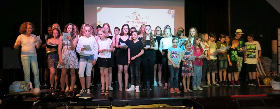Traditionell beschloss das GAG das Schuljahr 2016/17 wieder mit einem Sommerkonzert, das den Zuhörern die Vielfalt des musikalischen Lebens der Tecklenburger UNESCO-Schule nahe brachte. Arrangiert von der Musikfachschaft, war es auch in diesem Jahr wieder eine tolle Bilanz musikalischen Könnens. Die Bühne der Aula wurde durch sommerliche Requisiten und interessante Lichteffekte zum Hintergrund für virtuose Soli und sehr lebendige Orchester- und Chordarbietungen: Alle zeigten tolle Leistungen, die Sommergefühle und Freude auf die Ferien vermittelten.