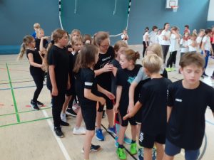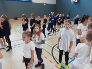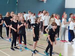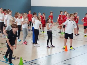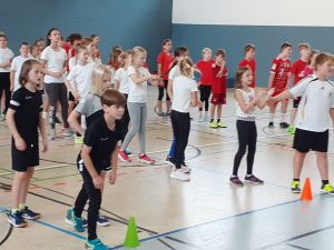 „Fair statt Foul“ – So lautete am letzten Schultag vor den Herbstferien das Motto für die Jahrgangsstufe 5 des Graf-Adolf-Gymnasiums (GAG). Beim Hallensportfest konnten sich die Kinder austoben und sie erlebten einen abwechslungsreichen Sporttag, den die Sportkolleginnen und -kollegen und die Klassenleitungen mit den Klassenpatinnen und -paten aus dem neunten Jahrgang organisiert hatten.