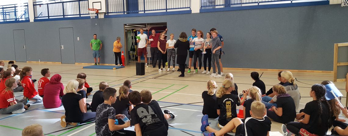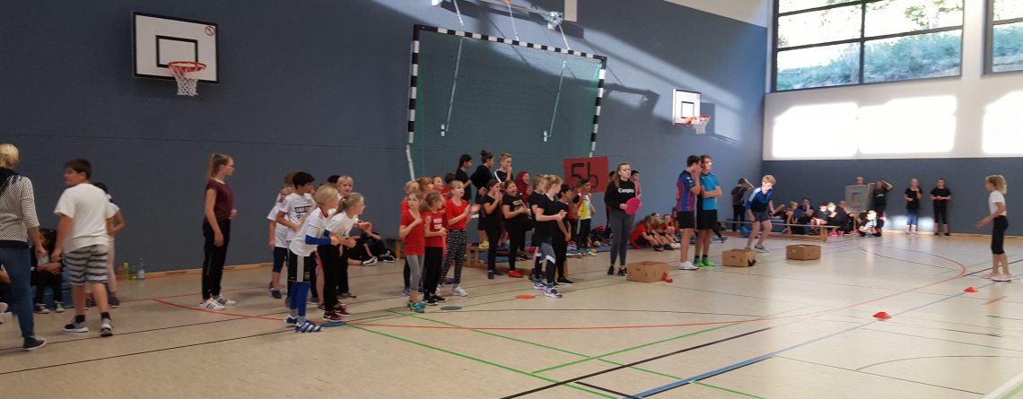 „Auf die Plätze – fertig – Spaß!“ – So lautete am letzten Schultag vor den Herbstferien das Motto für die Jahrgangsstufe 5 des Graf-Adolf-Gymnasiums (GAG). Beim Hallensportfest konnten sich die Kinder austoben und sie erlebten einen abwechslungsreichen Sporttag, den Lehrer Michael Spratte gemeinsam mit Sportkolleginnen und -kollegen und den neun Klassenpatinnen und -paten aus dem neunten Jahrgang organisiert hatte.