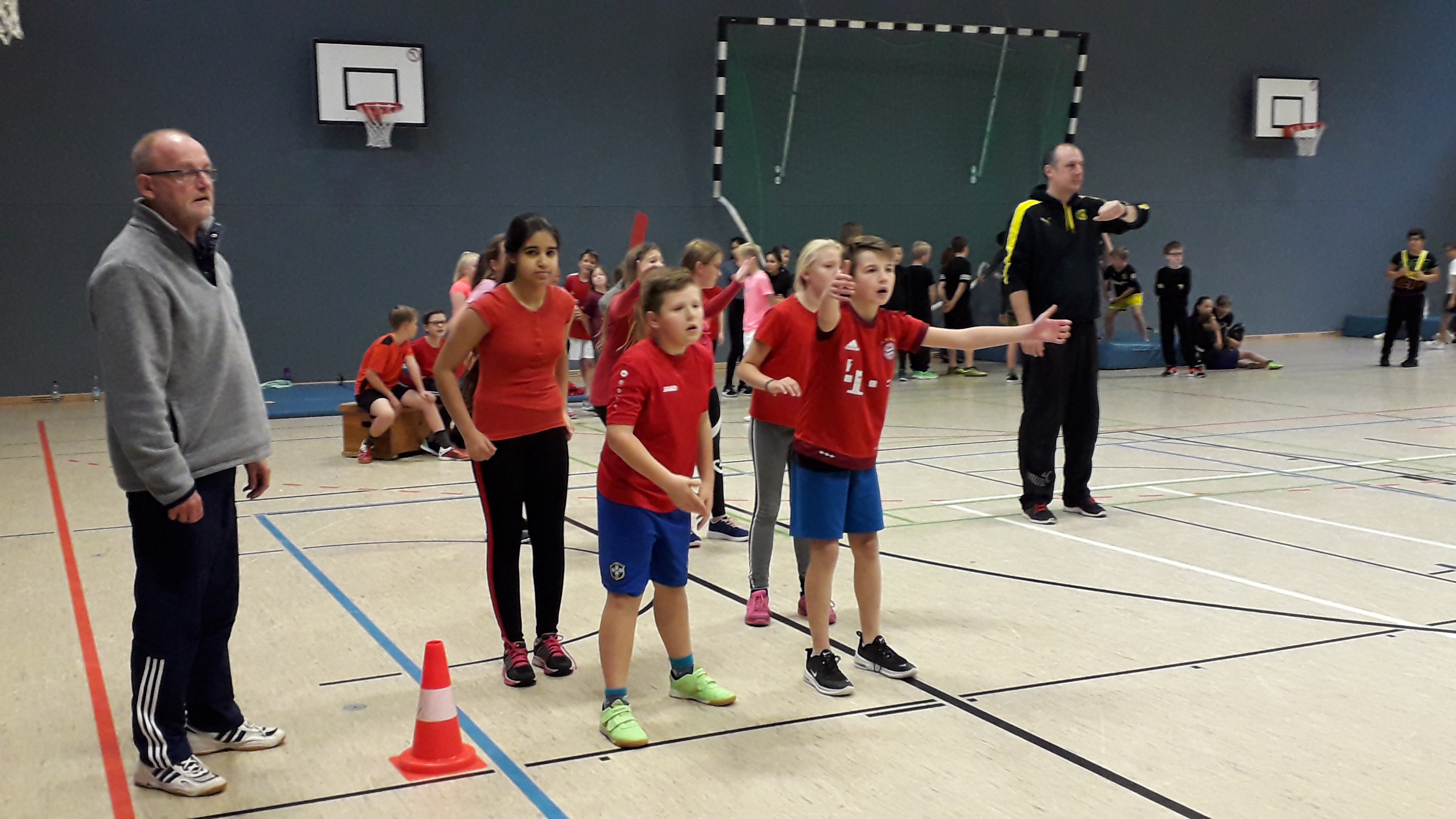 Verschiedene Staffelläufe erwarteten im GAG-Mehrkampf die Mädchen und Jungen, die ihre Sport- und Klassenlehrerinnen und -lehrer lauthals unterstützten. Dabei galt es, Hindernisse zu überqueren, ein Memoryspiel zu lösen oder aus dem Stand weit zu springen. Für Aktion sorgte die Lauf-Wurf-Staffel, die Umkehrstaffel oder die Teppichfliesen-Staffel, bei der sich eine Schülerin beziehungsweise ein Schüler auf einer Teppichfliese sitzend von seinem Teammitglied ziehen ließ.