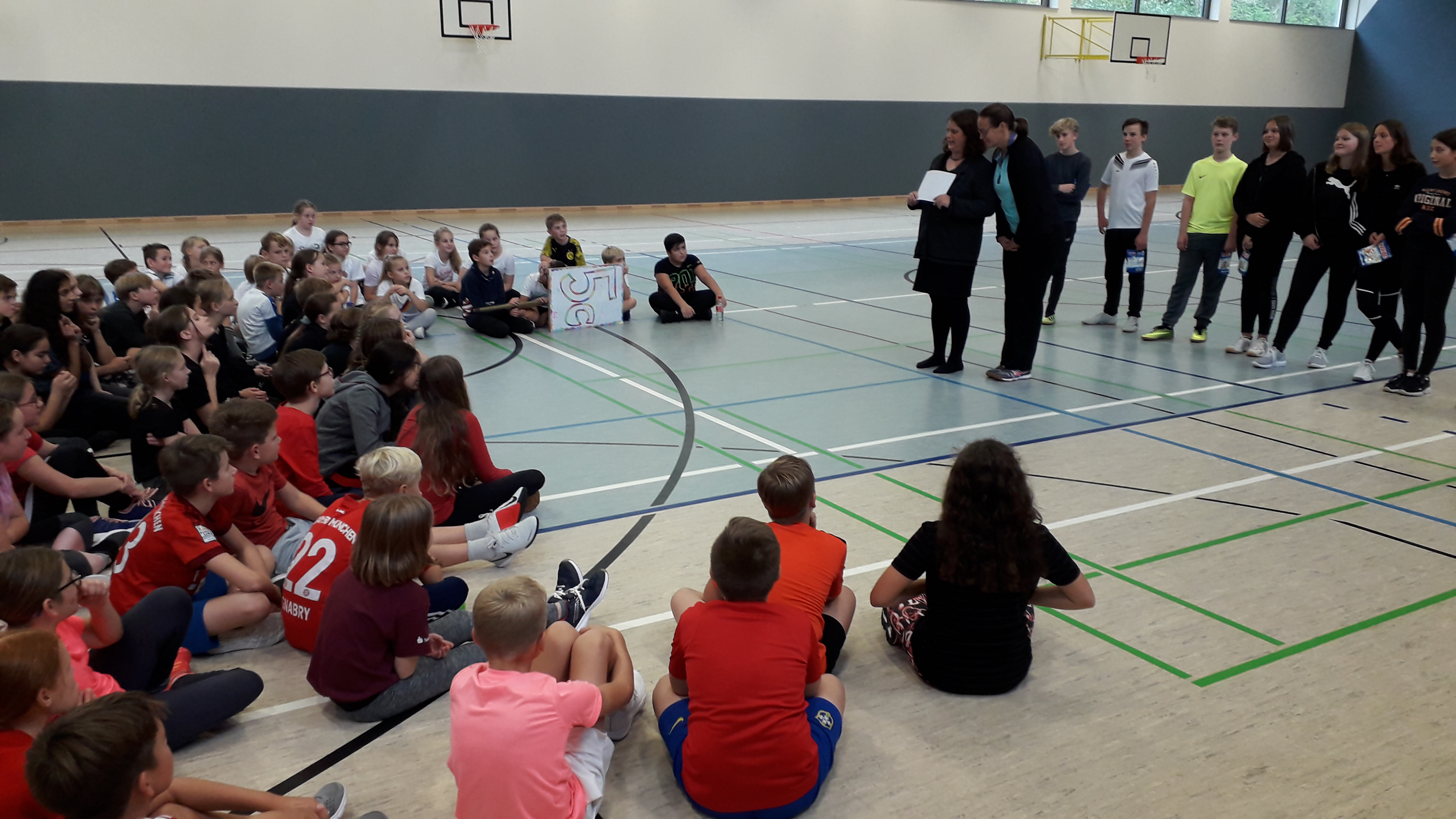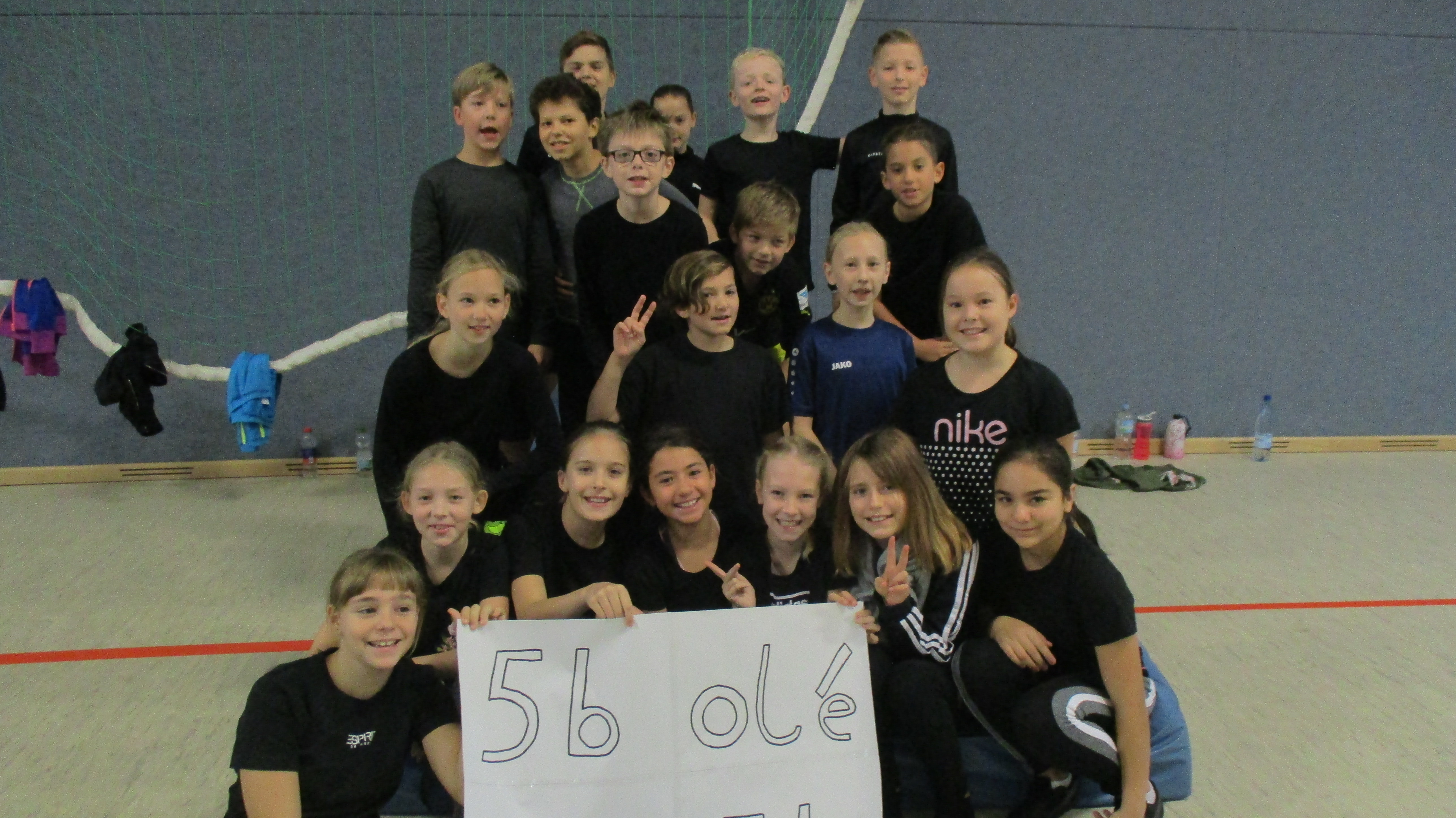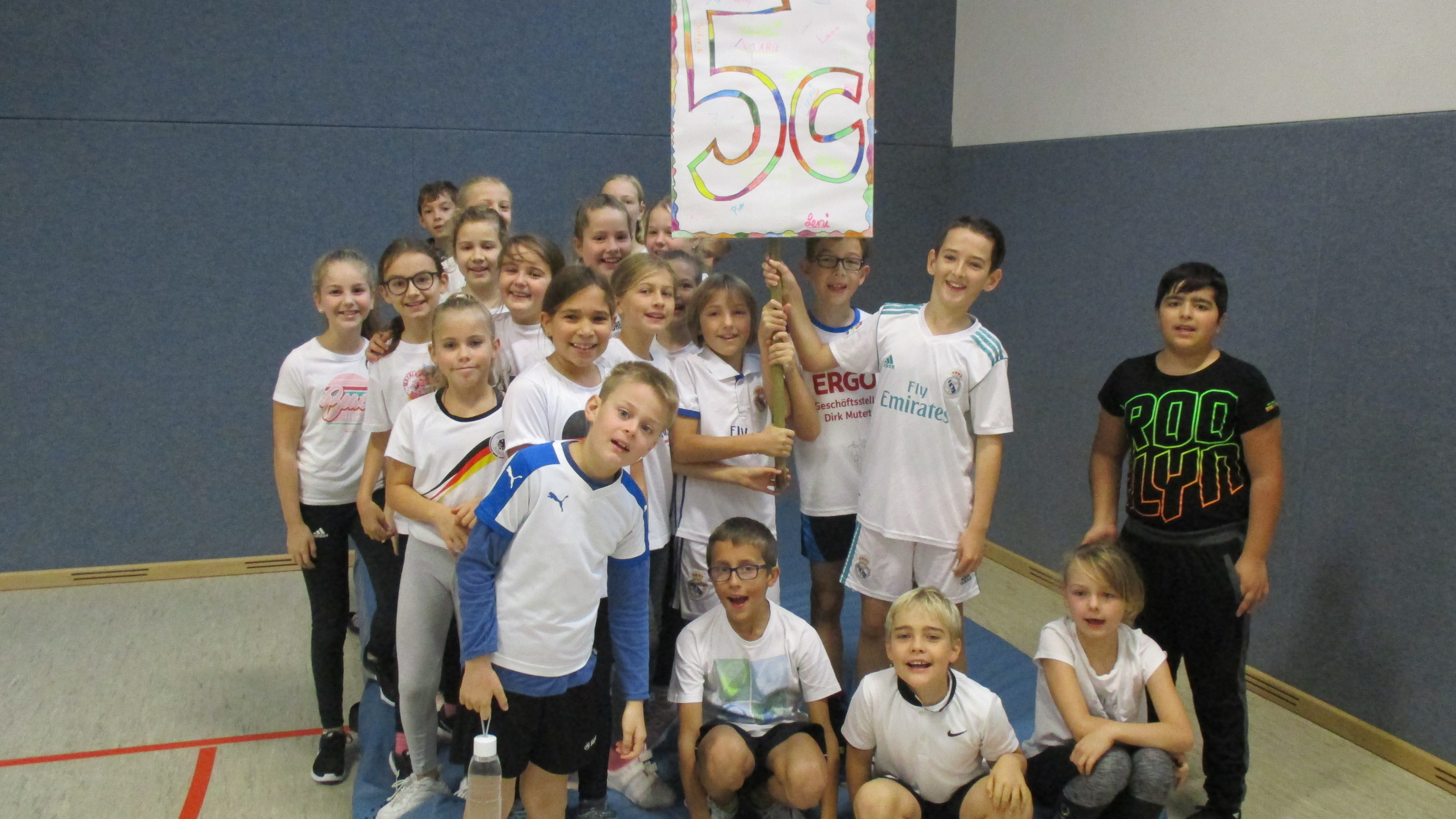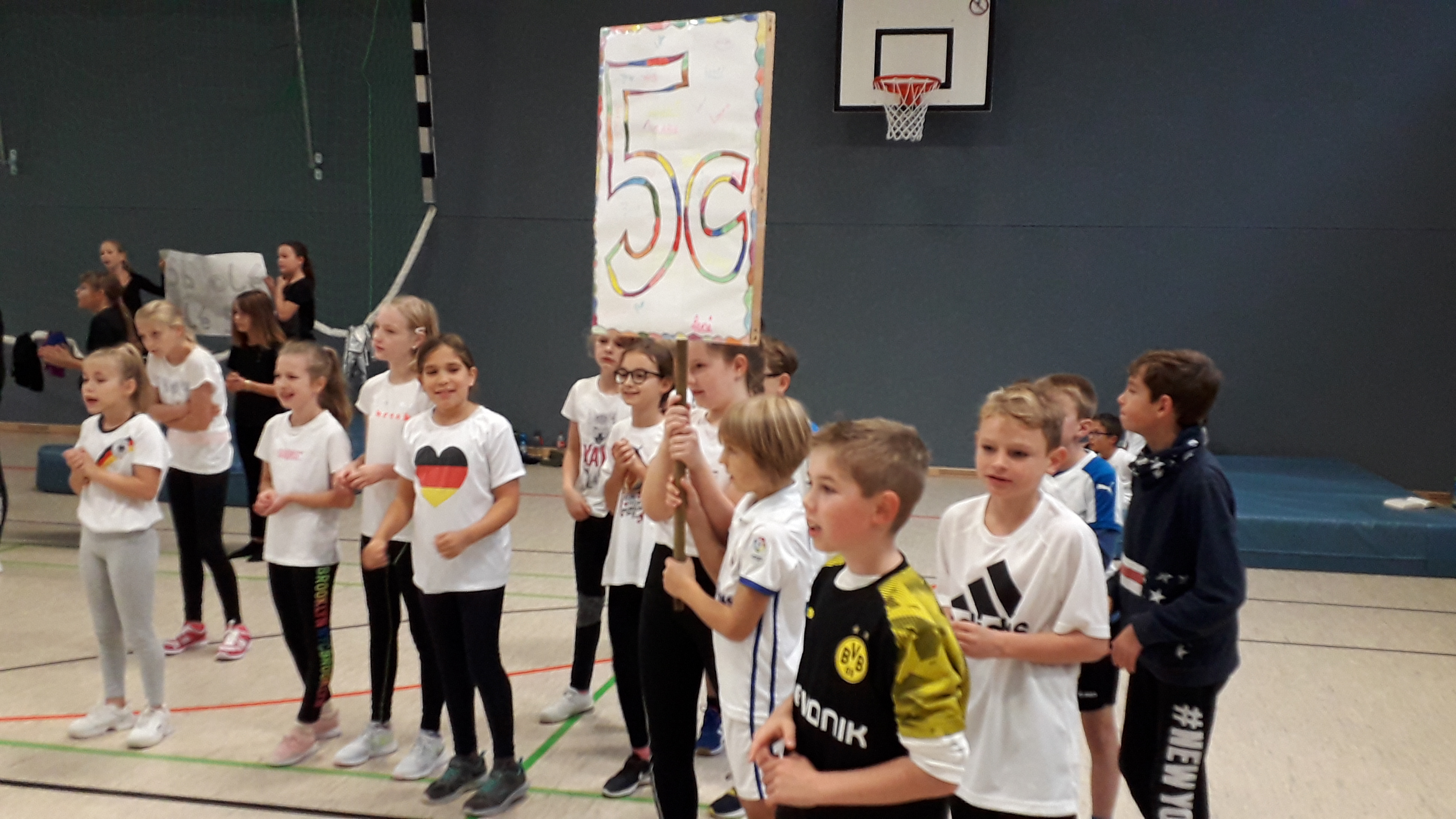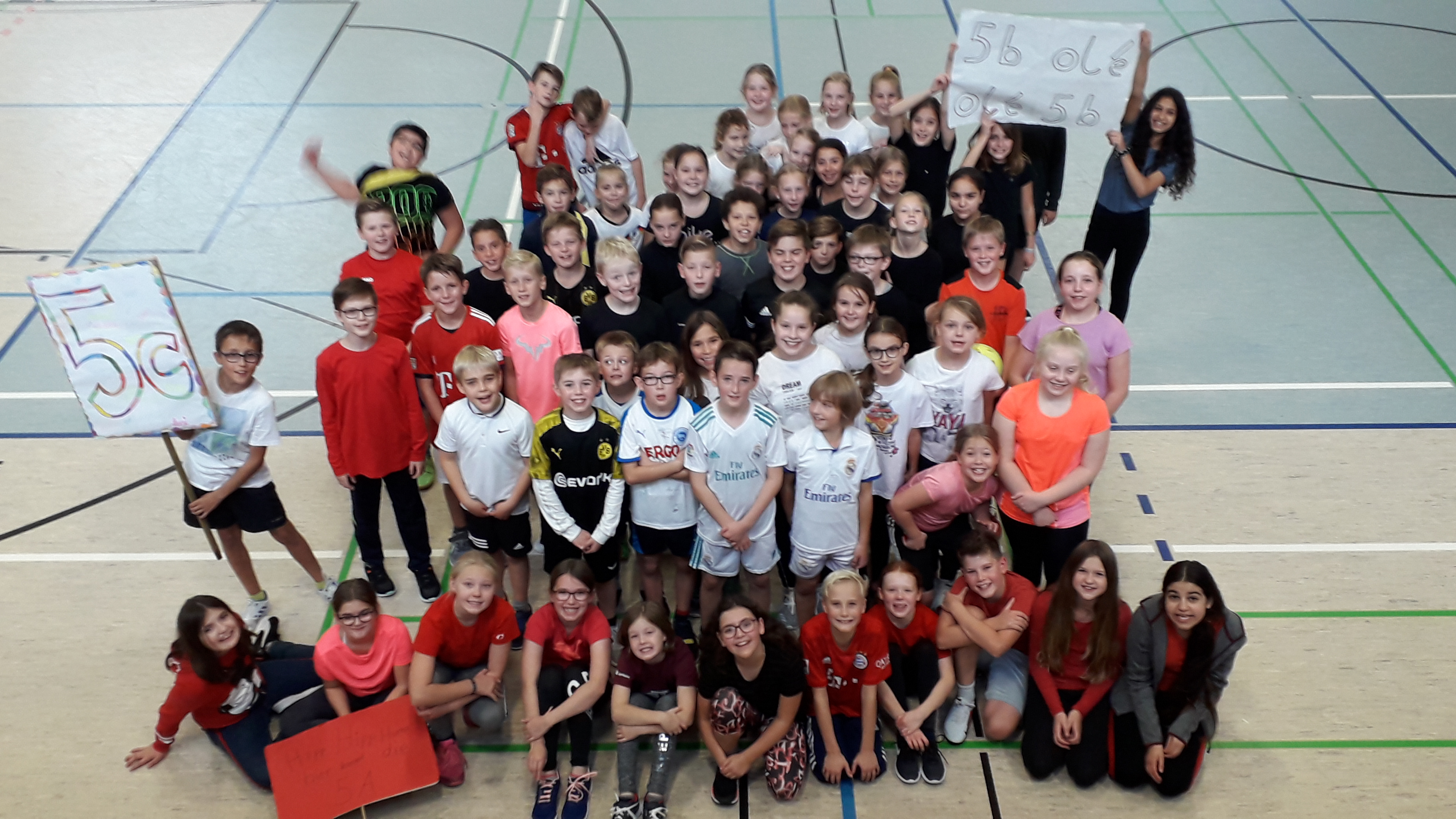 Nach dem Fußball- und Völkerball-Turnier hatten sich die Fünftklässlerinnen und Fünftklässler nicht nur ihr Mittagessen, sondern auch die Herbstferienpause redlich verdient. Fairness und Spaß standen im Vordergrund und alle freuten sich über ihre Klassenurkunden, die sie aus den Händen von Schulleiterin Evelyn Futterknecht erhielten. Die Klasse 5a jubelte über den Gesamtsieg vor der 5b und 5c, die aber dafür bei der Gestaltung des Klassenschildes bei der Jury die Nase vorn hatte.
