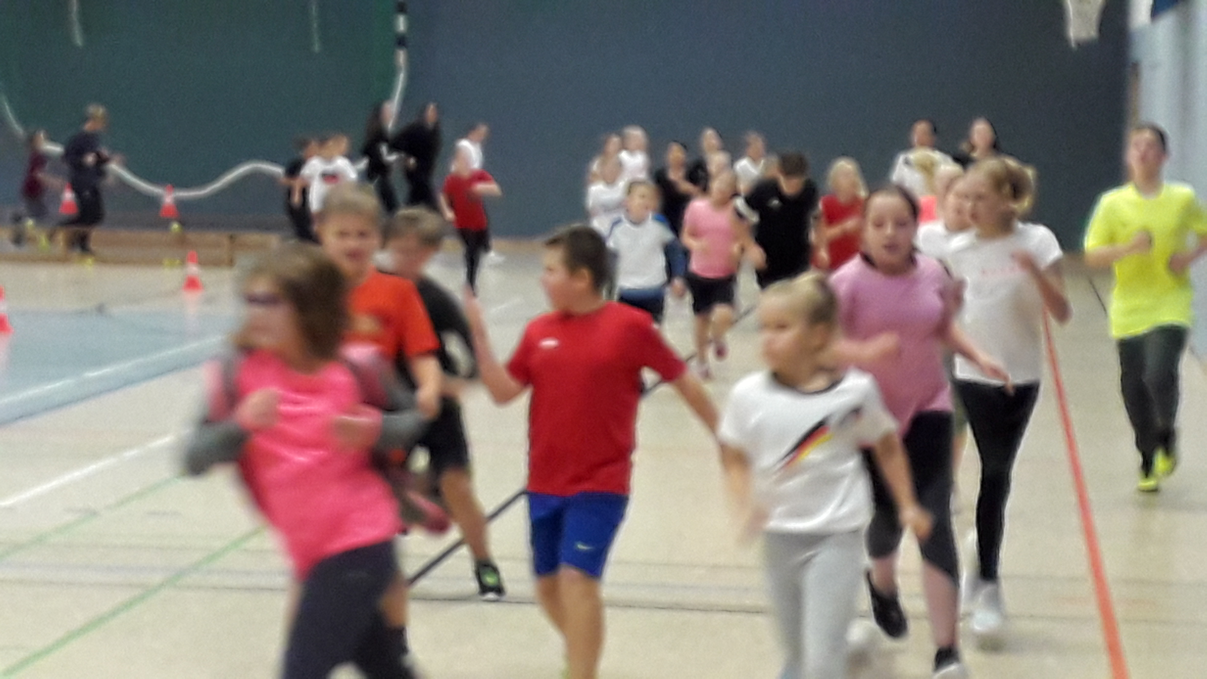 „Auf die Plätze – fertig – Spaß!“ – So lautete am letzten Schultag vor den Herbstferien das Motto für die Jahrgangsstufe 5 des Graf-Adolf-Gymnasiums (GAG). Beim Hallensportfest konnten sich die Kinder austoben und sie erlebten einen abwechslungsreichen Sporttag, den die Lehrkräfte Stephanie Akamp und Michael Spratte gemeinsam mit Sportkolleginnen und -kollegen und den neun Klassenpatinnen und -paten aus dem neunten Jahrgang organisiert hatten.