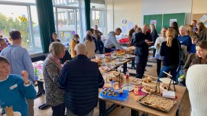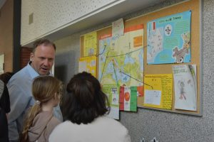 Auf einen nicht nur aus einer Feierstunde bestehenden Jubiläums-Festtag am Freitag, den 20. März hatten sich am GAG im Frühjahr 2026 schon langfristig die Vorbereitungen konzentriert, und man war sich einig, dass ein Rahmen, der allen Lernenden Gelegenheit zur bewussten Mitarbeit geben konnte, am passendsten durch die Vorausnahme des UNESCO-Projekttags geschehen konnte, mit dessen vielsagendem Motto „Grenzen überwinden“. Das GAG als UNESCO-Schule nutzte das diesjährige Thema des weltweiten Netzwerks als einen stimmigen Rahmen, um in allen Lerngruppen Projekte und mit einem breiten Fächerkanon zu planen, die am Vormittag vorgestellt wurden. Mit einem bunt gefächerten Potpourri an Gestaltung, Forschung und Aktion startete man vormittags gemeinsam mit der Chalonner Gastgruppe und Gästen aus beiden Ländern, indem man die Projekte der heutigen Lernenden ausgiebig würdigte. Dazu gehörte aber auch, dass eine Aufstellung aller Ehemaligen Austauschgruppen durch die Französisch-Fachschaft vervollständigt wurde.