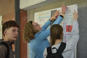 Die diesjährige Partnerschaftsgruppe umfasste 42 „corres“ von Deutsch- und Französischlernenden: Beide Seiten lernten sich bereits in Chalonnes kennen, und daher waren die Jugendlichen bereits mit Aspekten ihrer deutschen Partnerfamilien vertraut, das sie nun über eine Woche ‚live‘ miterleben sollten. Seitens des Collège waren es wieder Anne-Sophie Renoust, Bernadette Dilé-Abelard und Nelly Furst, die sie begleiteten. Die GAG-Französischfachschaft, vertreten durch Anja Weitkamp, Katharina Thiel, Sebastian Salk und Natalie Mousset, hatte das Austausch- und Jubiläumsprogramm mitgestaltet, flankiert durch viele Kollegiumsmitglieder, die interessante Einzelbausteine erdacht und umgesetzt haben. Hier ist vor allem das Potpourri kreativer Ideen zu nennen, das von Kunstlehrerin Lisa Volkamer im Rahmen des Jubiläumsgedankens initiiert wurde: Ein längerfristig im Rahmen von Projektarbeit angelegtes deutsch-französisches Comic-Projekt ist in der Pausenhalle ausgestellt, eine Dokumentation ihrer Fotos zum Jubiläumsgeschehen ist im GAG-Intranet (iserv) abrufbar.
