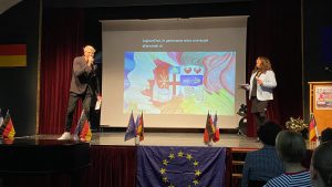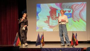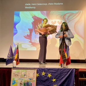 Zahlreiche der GAG-Projekte „Grenzen überwinden“ 2026 stachen durch ihre Originalität und Sensibilität in der Auswahl der Themen und der Formen ihrer Darstellung hervor. Die bunt gefächerten und thematisch vielschichtigen Ergebnisse (eine Aufstellung hierzu findet sich in der Dokumentation UNESCO-Aktivitäten des GAG) blieben noch eine Weile in der Pausenhalle ausgestellt und rahmten einen Festakt in der Aula sowie ein geselliges Beisammensein, übergehend in abendliche Partystimmung. Organisiert war alles von der Französisch-Fachschaft, einem sehr engagierten Jubiläums-Aktivkreis der GAG-Schulgemeinschaft, dem GAG-Kollegium und vielen Französischlernenden.