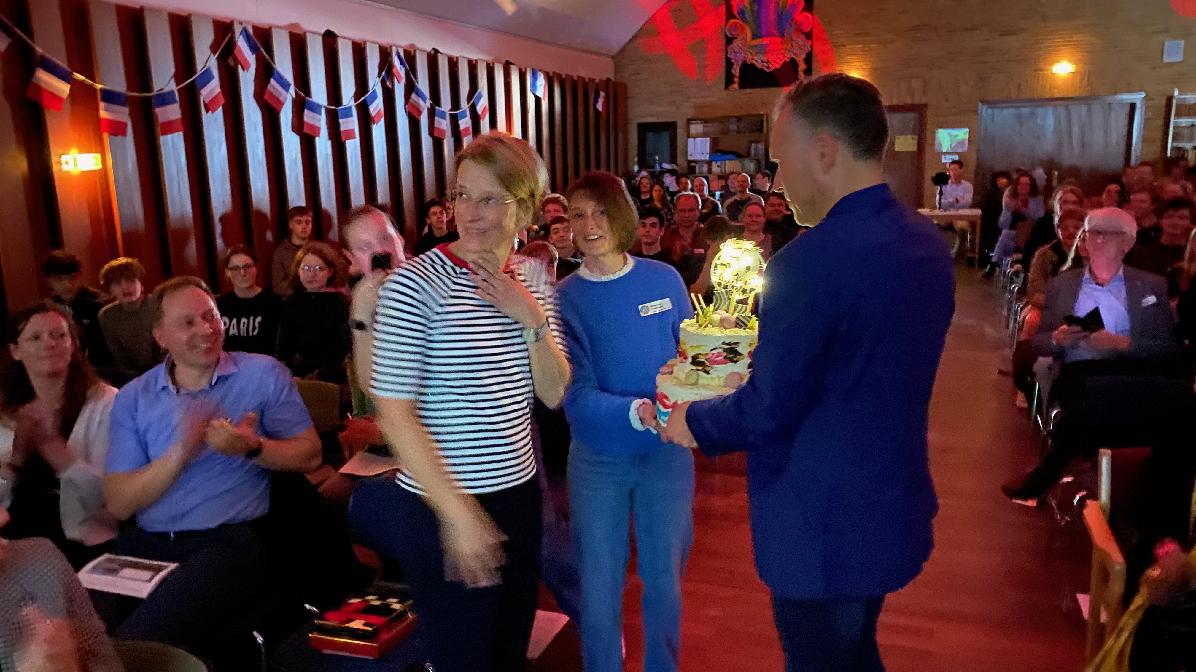 Zahlreiche der GAG-Projekte „Grenzen überwinden“ 2026 stachen durch ihre Originalität und Sensibilität in der Auswahl der Themen und der Formen ihrer Darstellung hervor. Die bunt gefächerten und thematisch vielschichtigen Ergebnisse (eine Aufstellung hierzu findet sich in der Dokumentation UNESCO-Aktivitäten des GAG) blieben noch eine Weile in der Pausenhalle ausgestellt und rahmten einen Festakt in der Aula sowie ein geselliges Beisammensein, übergehend in abendliche Partystimmung. Organisiert war alles von der Französisch-Fachschaft, einem sehr engagierten Jubiläums-Aktivkreis der GAG-Schulgemeinschaft, dem GAG-Kollegium und vielen Französischlernenden.