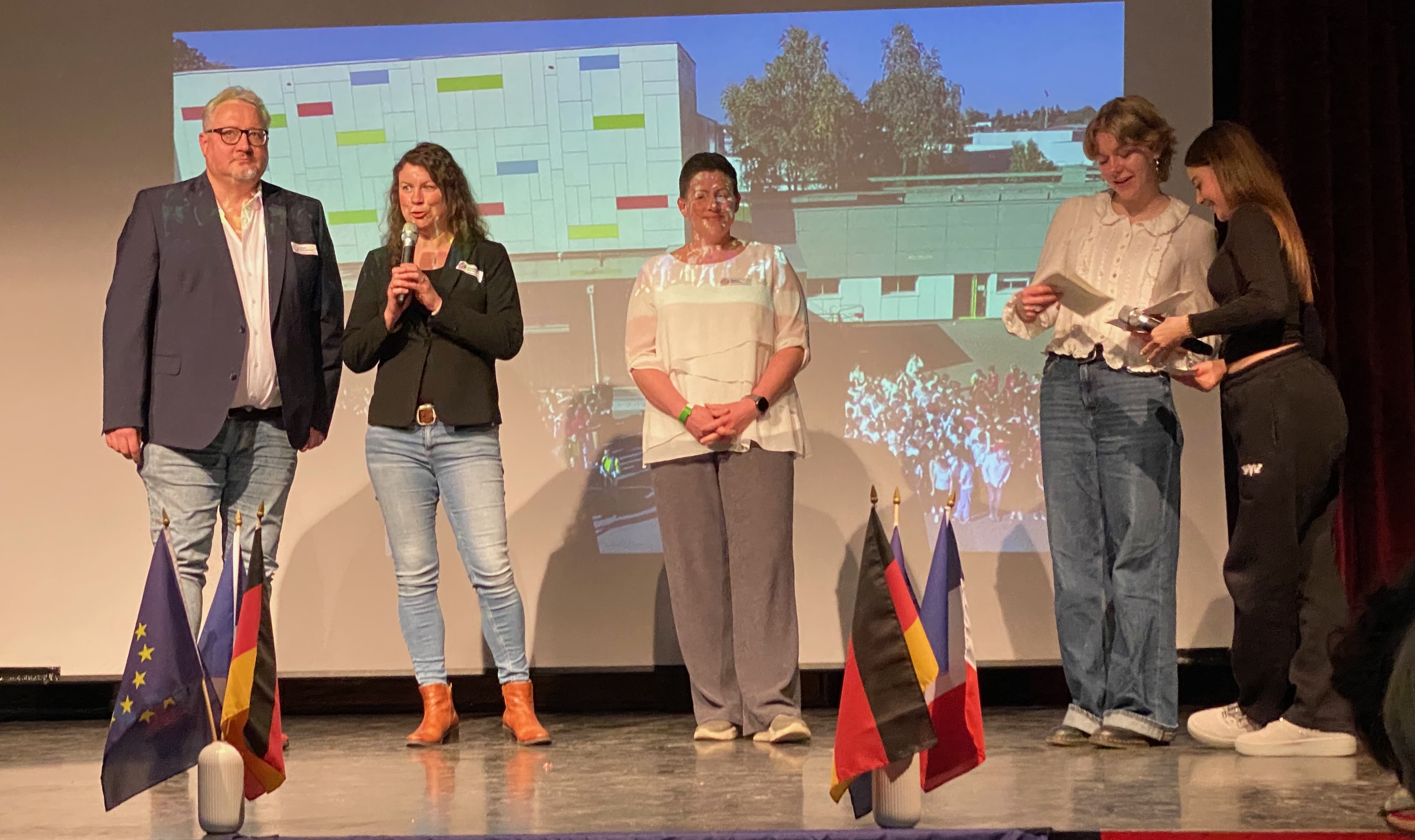 Schulleiterin Evelyn Futterknecht, die im Herbst 2025 selbst an der Jubiläumsfahrt nach Chalonnes teilnahm, hob begeistert die besondere und gastliche Atmosphäre, vermittelt auch durch den heutigen Schulleiter Monsieur Bruno Faucher, das Kollegium und die Schulgemeinschaft des Collége hervor. Auch die anregende Kooperation, die sie seit Jahren im Erfahrungsaustausch mit Mme Kathy Desveaux, der stellvertretenden Schulleiterin des Collège pflegt, habe in vielen Bereichen Ideenaustausch und Integration von Modulen der Partnerschulen möglich gemacht.