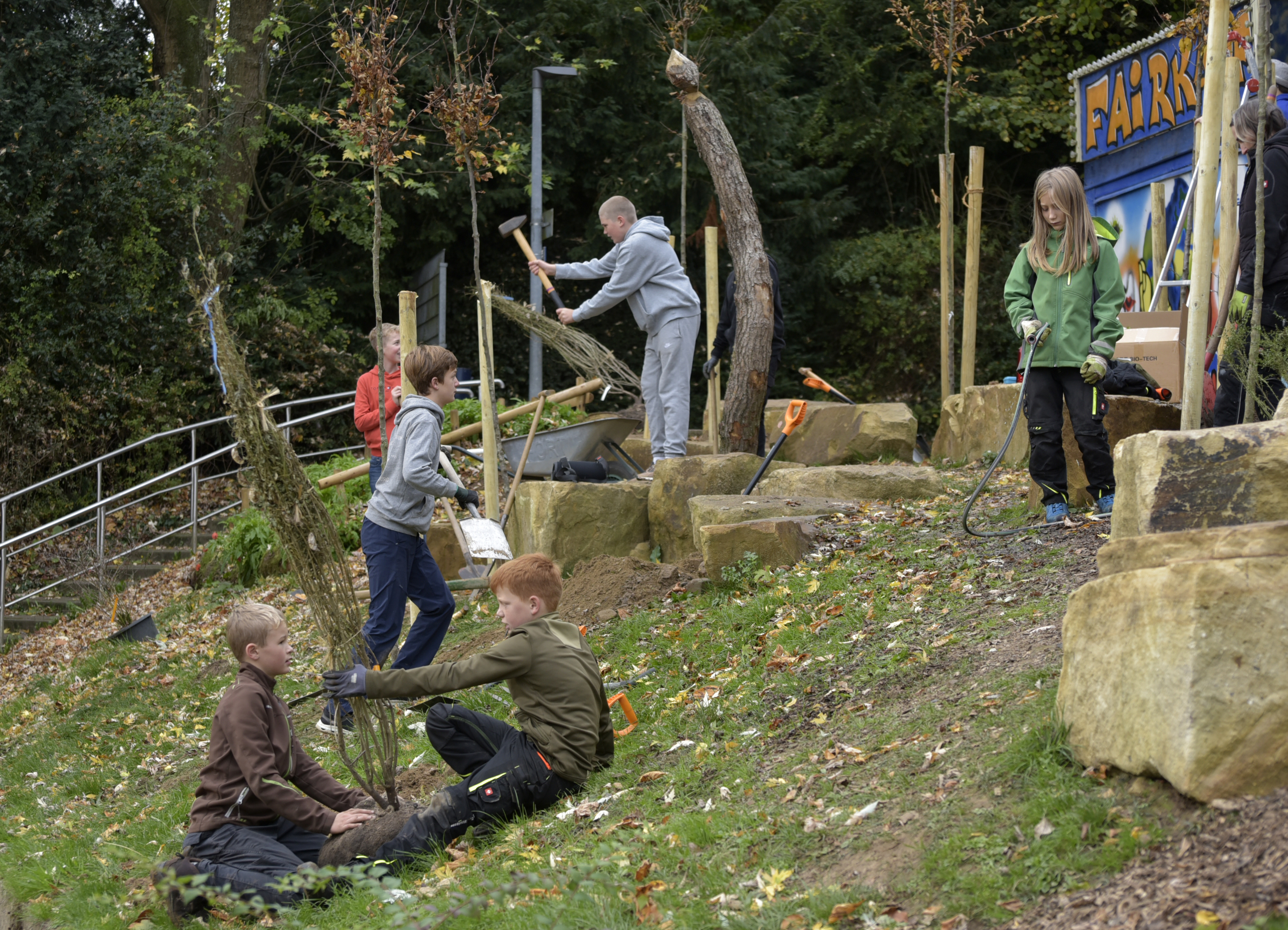 Mit vollem Einsatz waren wieder Eltern, SchülerInnen und Lehrkräfte unter der Anleitung von Stefan Wrobel der Ideenwerkstatt Bad Salzuflen auf dem Schulhof aktiv.