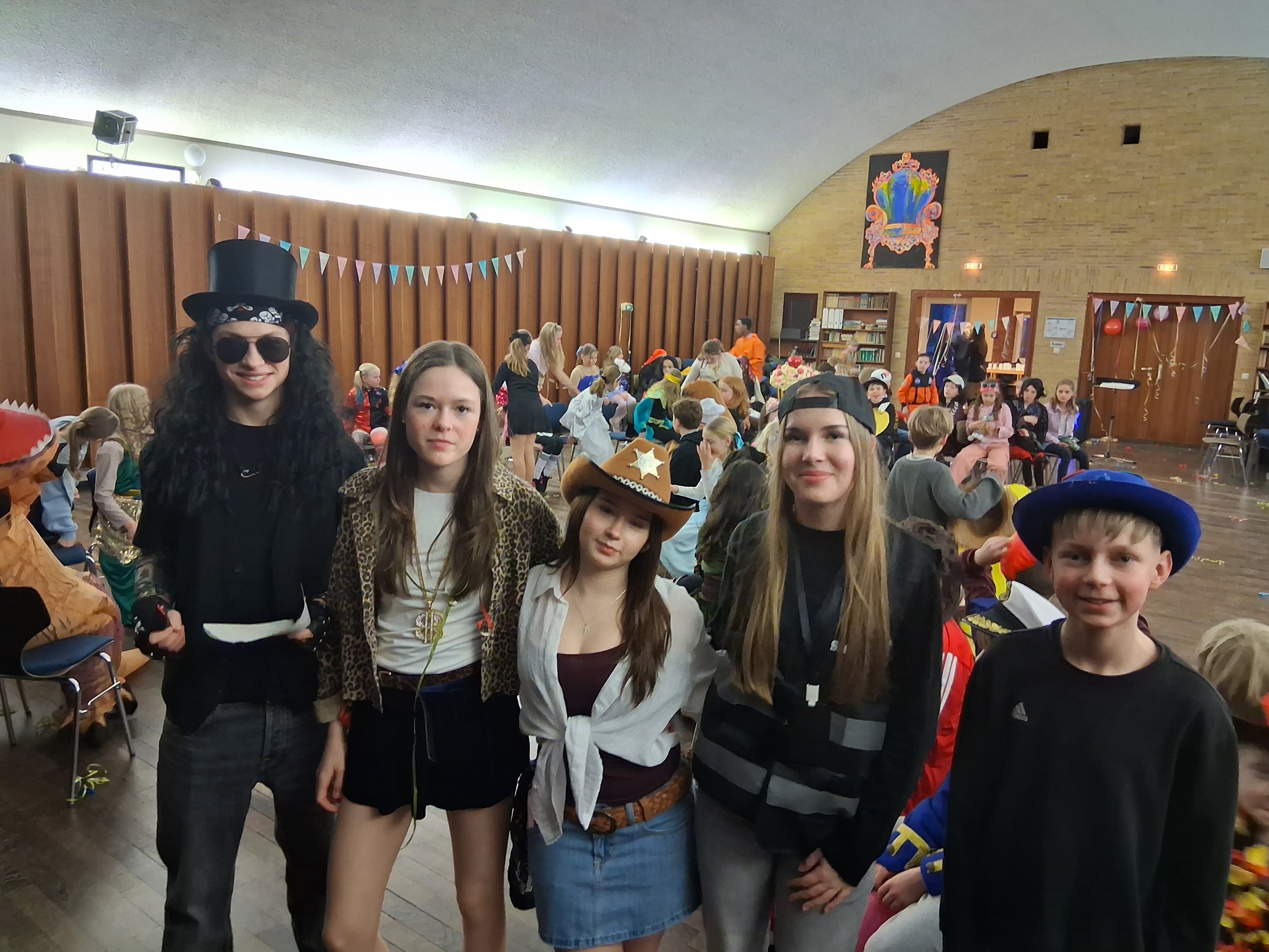 Lustige Tanzspiele, leckere Knabbereien und tolle Musik waren die Zutaten für eine Karnevalsparty für die Jahrgangsstufe 5 in der bunt dekorierten Aula. Dank der Patinnen und Paten sowie Streitschlichterinnen und -schlichter aus der Jahrgangsstufe 9 und der Organisation von Susanne Wilmer erlebten die Kids aus den fünften Klassen eine Feier mit super Stimmung.