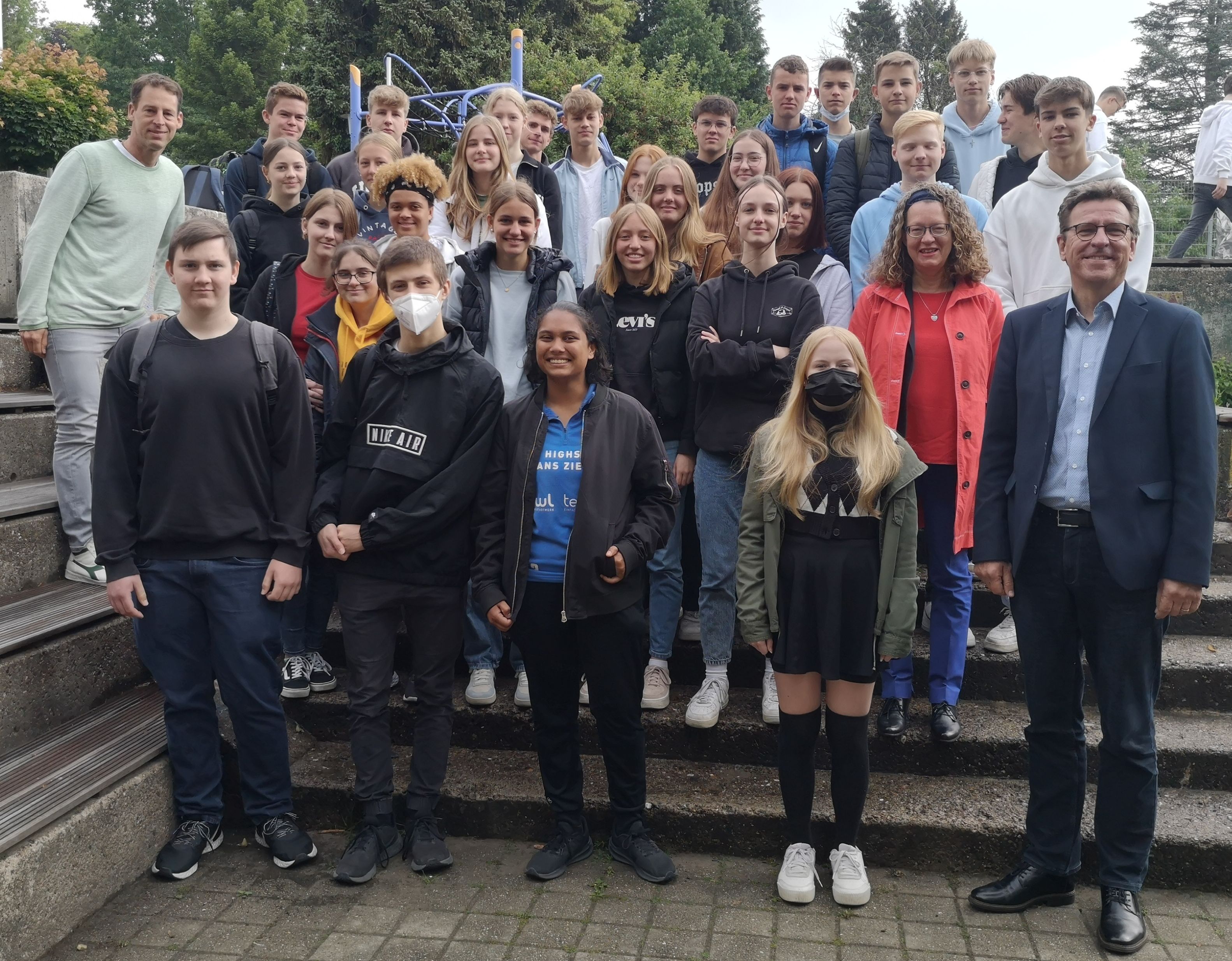 Zu Gast im Religionsunterricht der Jahgangsstufe 10 (EF) des Graf-Adolf-Gymnasiums war am Dienstag (7. Juni 2022) der Superintendent des Evangelischen Kirchenkreises Tecklenburg André Ost, um mit den Jugendlichen über Gegenwart und Zukunft der Kirche zu sprechen. GAG-Religionslehrkräfte Ulrike Lausberg und René Gizinski wollten ihren 32 Schüler*innen die Möglichkeit geben, zu religiös-kirchlichen Themen unserer Region in Dialog zu treten.
