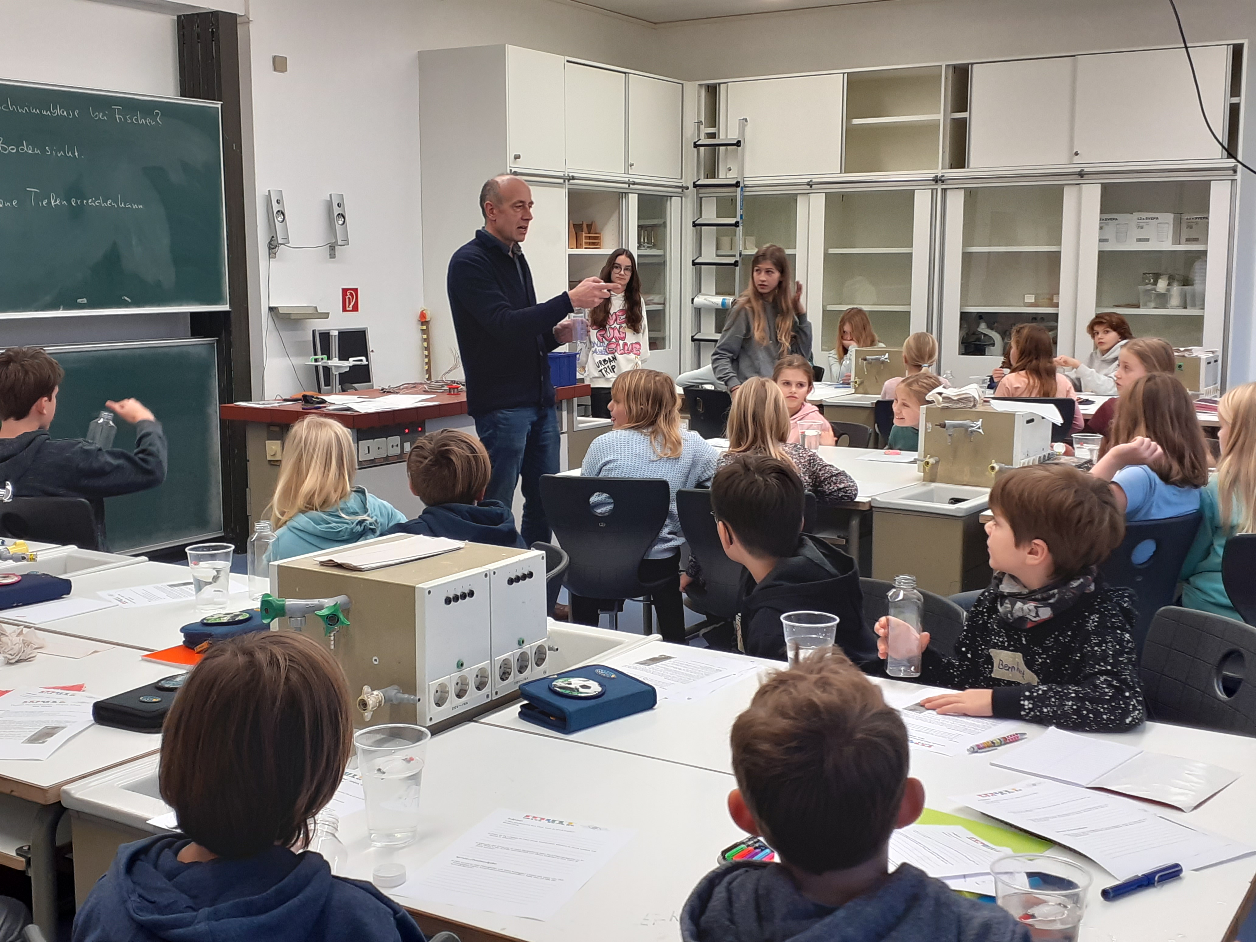 Ausgebucht war zudem der MINT-Schnuppernachmittag, der sich an Kinder aus dem vierten Jahrgang gerichtet hat. Die Biologielehrer Wolfgang Finkmann und Birgit Füchtmeyer haben mit den Mädchen und Jungen die Frage betrachtet, wieso ein Fisch im Wasser schwebt. Handlungsorientiert bauten die jungen GAG-Gäste einen Flaschentaucher, der die Funktionsweise einer Schwimmblase beim Fisch veranschaulichte.