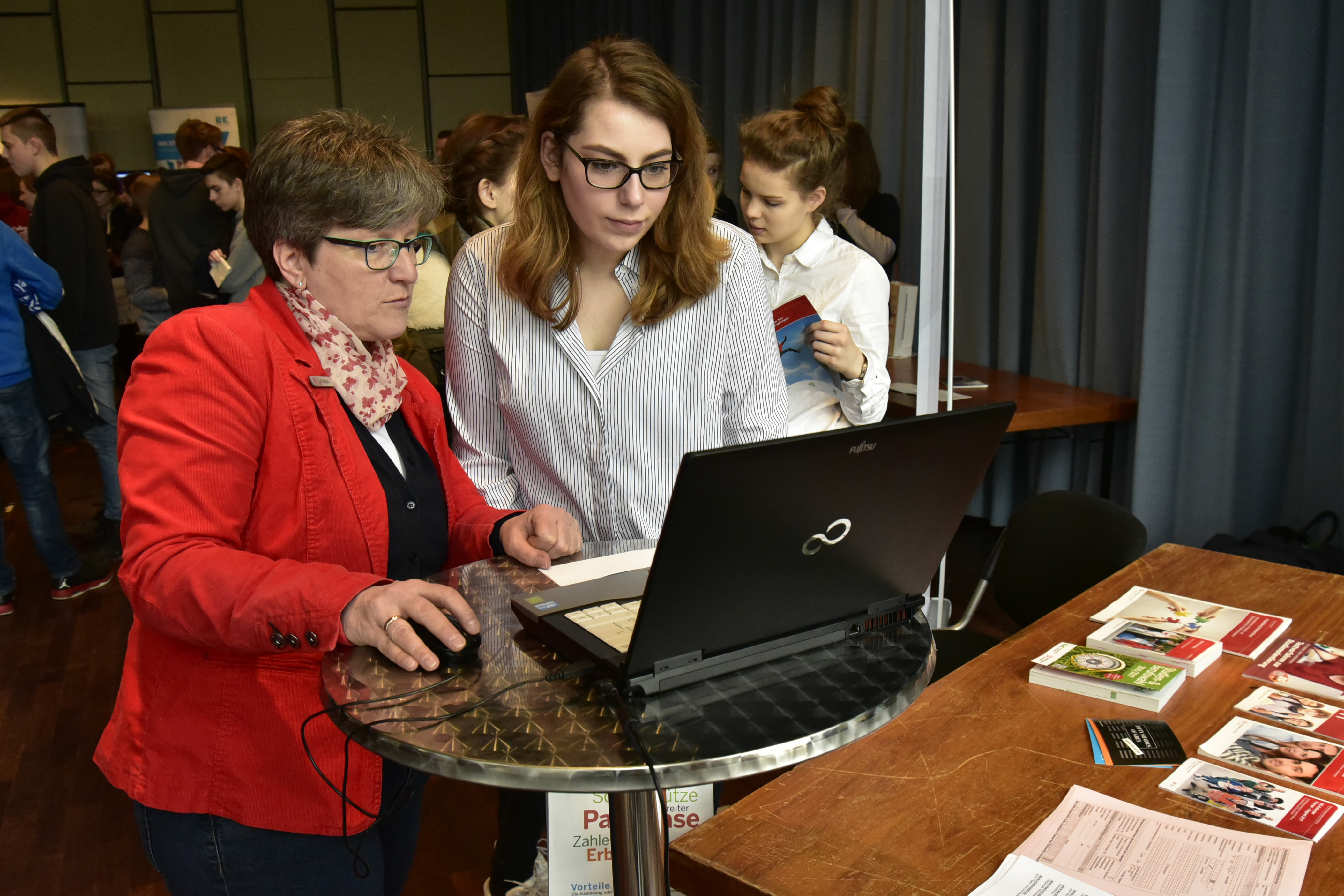 Unternehmen aus der Region sowie Stände, an denen sich Polizei, Bundeswehr , Krankenkassen, Finanzverwaltung präsentieren, technische oder kaufmännische Berufe, Ausbildung oder duales Studium – im Kulturhaus ist am Donnerstagvormittag nicht nur Orientierung in beinahe allen Bereichen möglich. Für diejenigen, die konkrete Vorstellungen für die Zeit nach der Schule haben, gibt es auch Antworten auf viele Fragen.