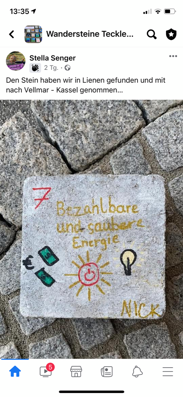 Stephanie Akamp, die als Lehrerin des Mathematik-Leistungskurses gemeinsam mit Jana Sablitzki als Klassenlehrerin der 5c die Wandersteine-Aktion im Rahmen der UNESCO-Projekttage umsetzte, hat über die damit verknüpfte Facebook-Seite schon zahllose einschlägige Nachrichten mit Reisefotos ihrer Wandersteine erhalten. Die seitliche QR-Code-Markierung aller Steine macht ihre Verortung nach allen „Umzügen“ möglich, was beide Lehrerinnen mit Begeisterung verfolgen. Von der Wirkung des Projekts sind sie, ebenso wie ihre Lerngruppen, emotional sehr berührt. Der Impuls kam von Jana Sablitzki, die als Klassenlehrerin der 5c die ideale Partnergruppe in Stephanie Akamps Mathematik-LK fand: Schon diese Kooperation war für beide Altersgruppen etwas sehr Besonderes, die in dieser kreativen Form phantastisch lief, so bekunden beide. In der Produktionsphase verwandelten sich die grauen „alten“ Pflastersteine in bunte Botschaftsträger und absolute Hingucker: Am Rand der mit Leben erfüllten „Lebens(t)raum“-Baustelle säuberten und grundierten sie zunächst alle Betonklötzchen für eine Bemalung und gestalteten sie dann liebevoll und sehr individuell für ihre „Wanderungen“ durch die Welt. „Sieht man einen der Steine am Wegesrand, was im Prinzip überall sein kann, dann kann man ihn einfach nur betrachten und seine individuelle Botschaft erraten. Man kann ihn aber auch an jeden beliebigen neuen Ort mitnehmen“, so erklärt Jana Sablitzki das simple Prinzip. „Außerdem kann man aber auch noch den QR-Code scannen und uns die jeweiligen Standorte mitteilen, am besten auch verbunden mit einem Foto. „Ein wenig steht das auch für alle Schüler*innen dieser Welt, die während und nach ihrer Schulzeit an festen oder wechselnden Orten leben“, sagt Schulleiterin Evelyn Futterknecht, die in dem Projekt vieles sieht, das der GAG-Schulgemeinschaft als UNESCO-Schule wichtig ist. „Das UNESCO-Projekt „Wandersteine“ realisiert nicht nur die Idee, individuelle und kreative Botschaften junger Menschen auf Reisen zu schicken, sondern dient auch der Bewusstmachung und Aufklärung. Denn über den jeweiligen QR-Code an jedem einzelnen Stein, der für ein bestimmtes Entwicklungsziel der Nachhaltigkeitsagenda der Vereinten Nationen steht, sind Informationen über diese Sustainable Development Goals digital abrufbar, sodass sich interessierte Menschen, die auf einen Wanderstein stoßen, umfassend über die weltweiten Entwicklungsziele der Weltgemeinschaft zur Bekämpfung von Armut, ungleicher Verteilung und zum Erhalt einer lebenswerten Umwelt informieren können. Dass bei diesem Projekt sowohl jahrgangs- als auch fächerübergreifend kooperiert wurde, zeigt einen wichtigen Akzent unserer UNESCO-Schule im Sinne einer ganzheitlichen Pädagogik. Hier arbeiteten einige unserer jüngsten und ältesten Schüler*innen zusammen, um die „alten“ grauen Pflastersteine als bunte UNESCO-Symbole der Vielfalt umzugestalten und auf diesen kleinen vielgestaltigen Kunstwerken hoffnungsfrohe Gegenwarts- und Zukunftsvisionen für eine bessere Welt zu versenden. So sind dies Steine, die wirklich etwas ins Rollen bringen können.“