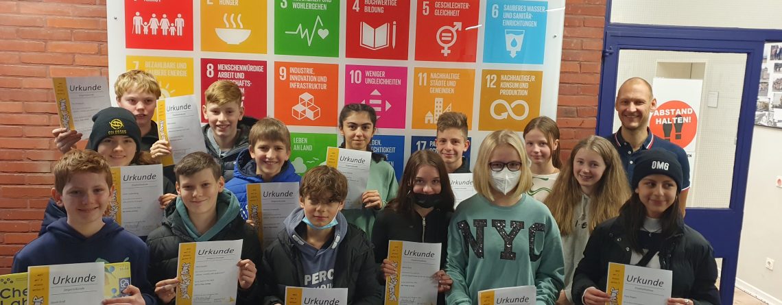 Der erste Platz ging an David Groß und Iustin Nor aus der Klasse 7b mit ihrer Untersuchung der Fragestellung „Kernfusion – die Energiequelle der Zukunft?“ Platz 2 ging an Tim Grotpeter, Paul Seidel und Manuel Zumsande aus der 7c zum Thema „Moore – gut für das Klima und gefährlich!“ Platz 3 erlangten Emma Reiher, Helene Knemöller und Azra Nazan Türkmen (7c) mit ihrer Untersuchung zur Frage „Sind Träume gut für den Menschen?“ Alle Finalteilnehmenden können dadurch nun eine „sehr gute“ Leistung als Einzelnote in dem naturwissenschaftlichen Fach ihres Themas einbringen. Die Plätze 1-3 freuten sich über Spiele, Experimentier- und Bastelkästen und sicherlich hier auch über hohe Wertschätzung in ihrem MINT-Bezugsfach.