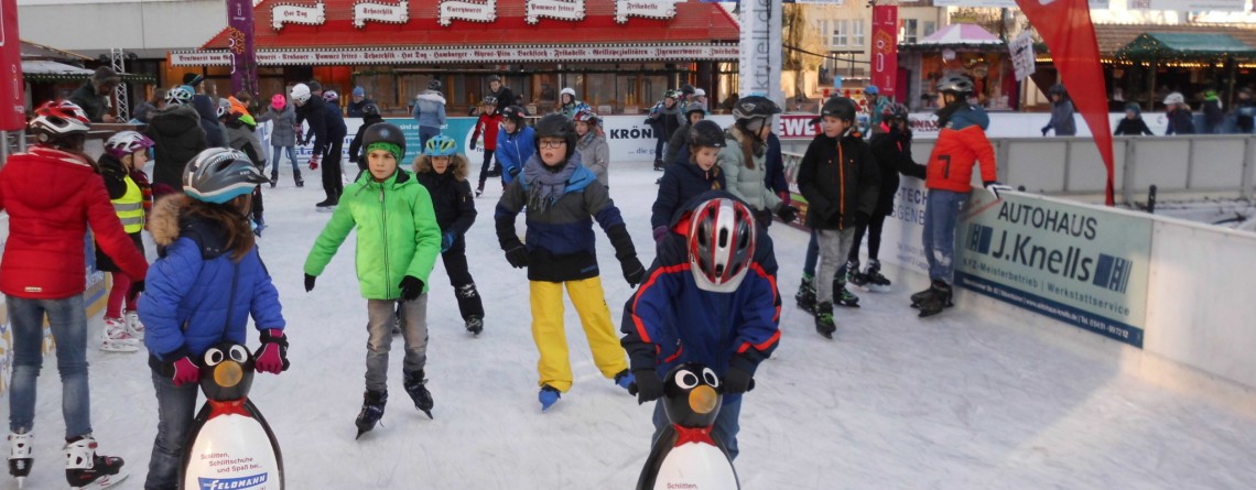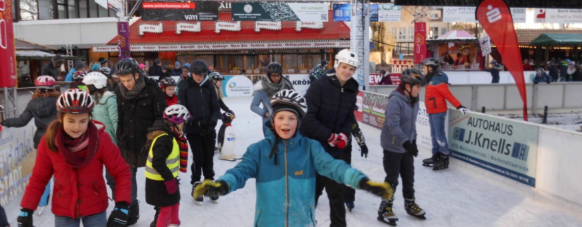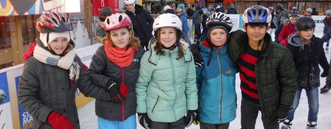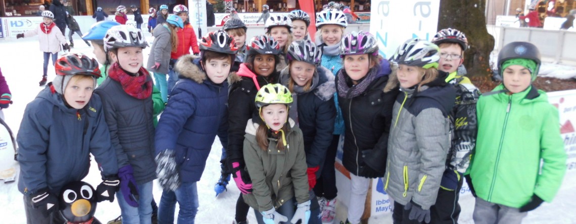 Zunächst ging es vom GAG aus mit dem Bus gen Ledde zur Haltestelle Sundermann. Von dort stand ein Spaziergang durch das idyllische Aatal an – mit Tieren am Wegesrand, Sonnenschein und Frostfeldern. Entlang der Bocketaler Straße und am Ostring vorbei wanderten die Kinder in Richtung Aasee, ehe es zum Ibbenbürener Rathausplatz ging. Am Ziel sorgte eine Stunde Schlittschuhlaufen bei allen für viel Spaß. Unzählige Runden drehten die Mädchen und Jungen. Einige ließen sich Pommes, gebrannte Mandeln oder einen Kakao schmecken, ehe es mit dem Bus zurück zum GAG ging.