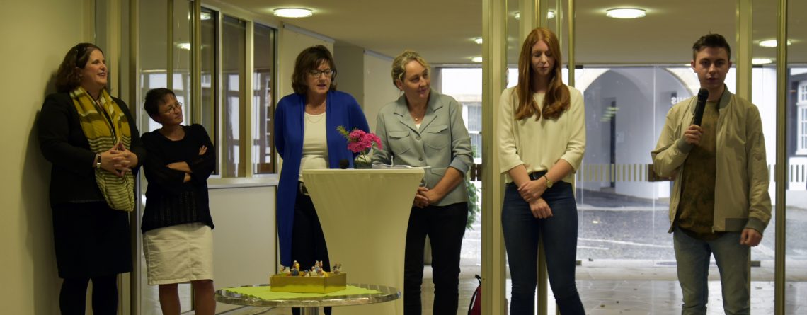 Ellen Ortmann, Lehrerin am GAG, hebt hervor, wie stolz sie und ihre Kollegin Lisa Volkamer auf das seien, was die Schüler in dem Projekt erarbeitet hätten. „Ihr habt Frieden als wichtiges Thema erkannt und ganz toll umgesetzt.“ Es sei zunächst eines von 40 gewesen, erinnert Schulleiterin Evelyn Futterknecht an die Projekttage der UNESCO-Schule vor den Ferien.