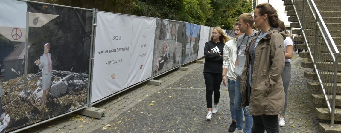 Fotokünstlerin Simone Thieringer lobt das Engagement der Schüler. Es sei schwierig, Frieden bildlich so darzustellen, dass die Botschaft auch verstanden werde. Die Schüler hätten es geschafft, „kleine Figuren groß zu machen“. Ausgehend von kleinen Eisenbahn-Modellfiguren hatte die Projektgruppe Motive auf Haus Marck entwickelt, die die Künstlerin dann fotografisch festgehalten hat.